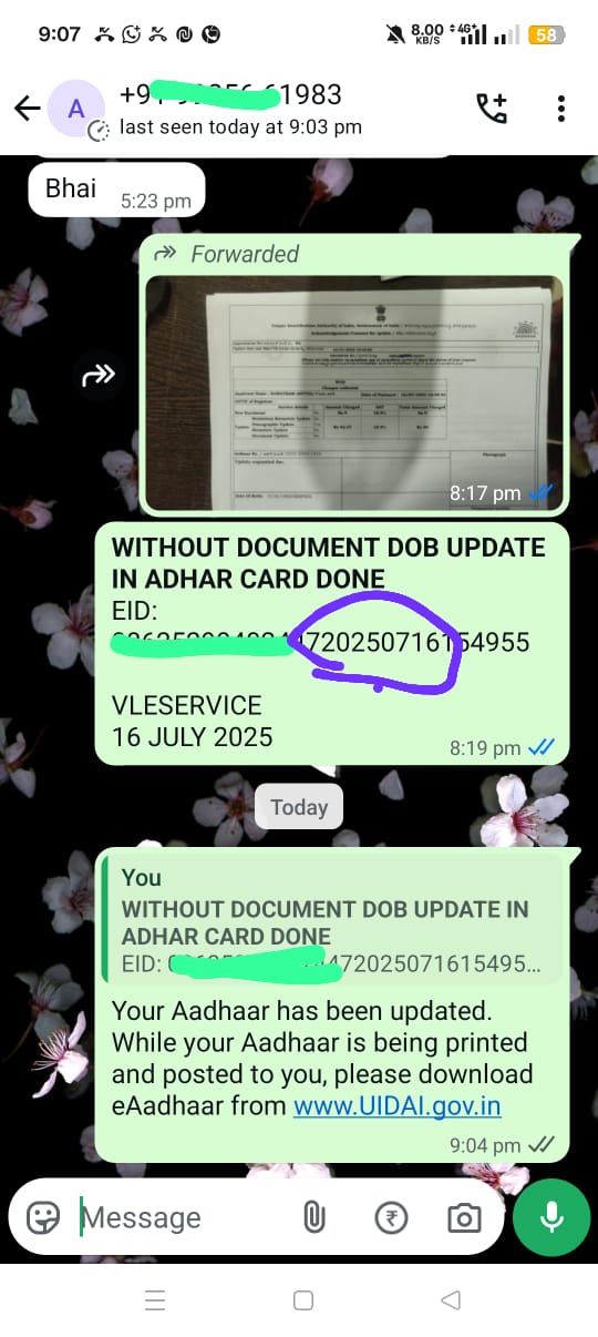 WITHOUT DOCUMENT DOB UPDATE IN ADHAR GENERATE ADHAR DONE |